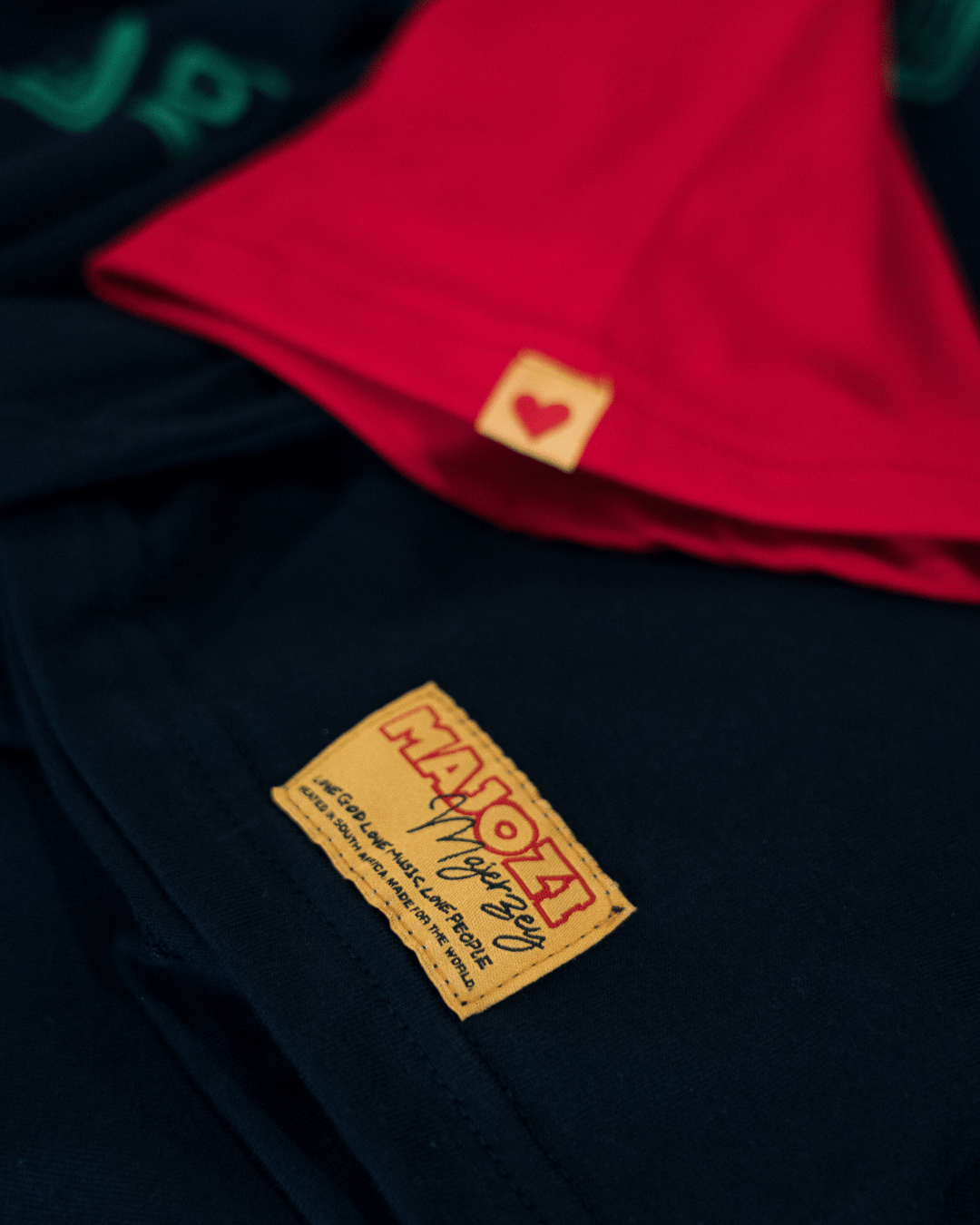 - Body detail: yellow Majozi Majerzey label bottom left, as an ode to past clothing creations