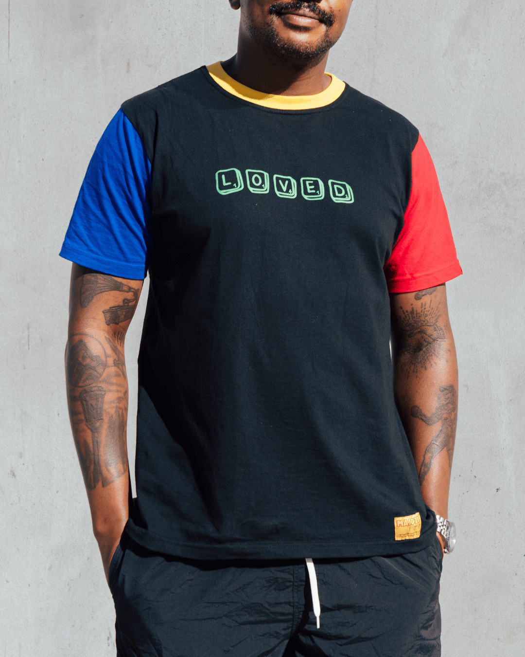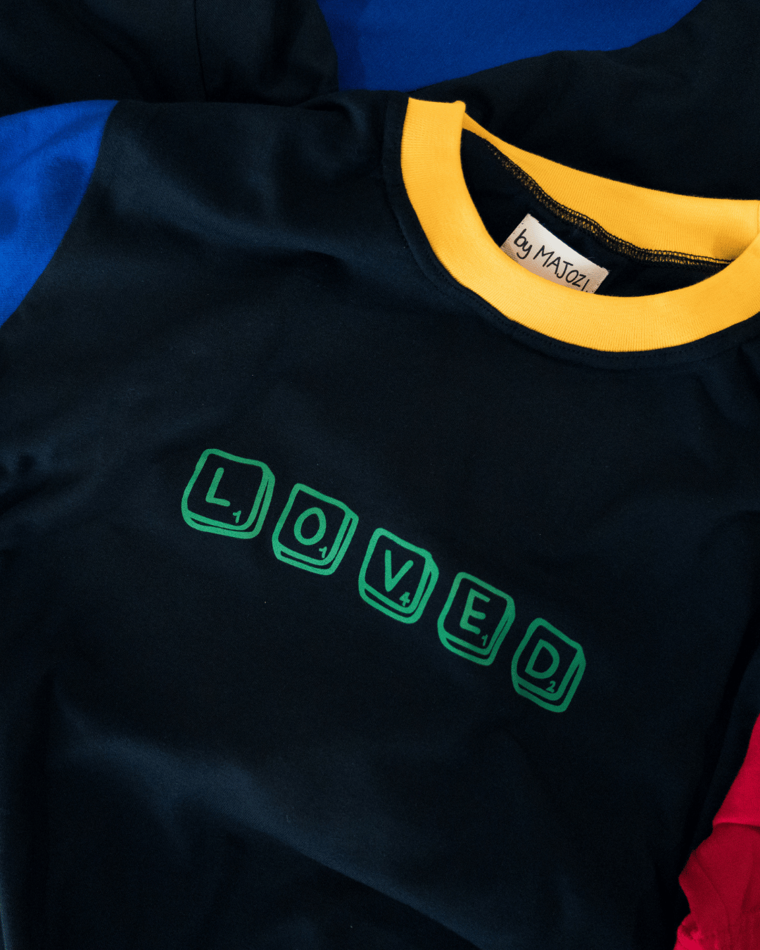 This comfy tee serves as a declaration and reminder to love and accept being loved. Inspired by growing up in the 90s, the Loved Scrabble illustration and colour block design adds to the nostalgic vibe. We hope in wearing this carefully crafted tee you too can experience some of the love that went into creating this garment. The tee is a regular cut and 100% Single Jersey Cotton, the 160gsm weight adds to the feel, quality and longevity of the garment. We’ve also added some details like our signature heart tab on the left sleeve, a motif of compassion and our mustard Majozi Majerzey label as an ode to where this all started. Inside the garment you’ll discover our by MAJOZI. label which proudly states that this has been “made for the world with love in Cape Town, South Africa”.