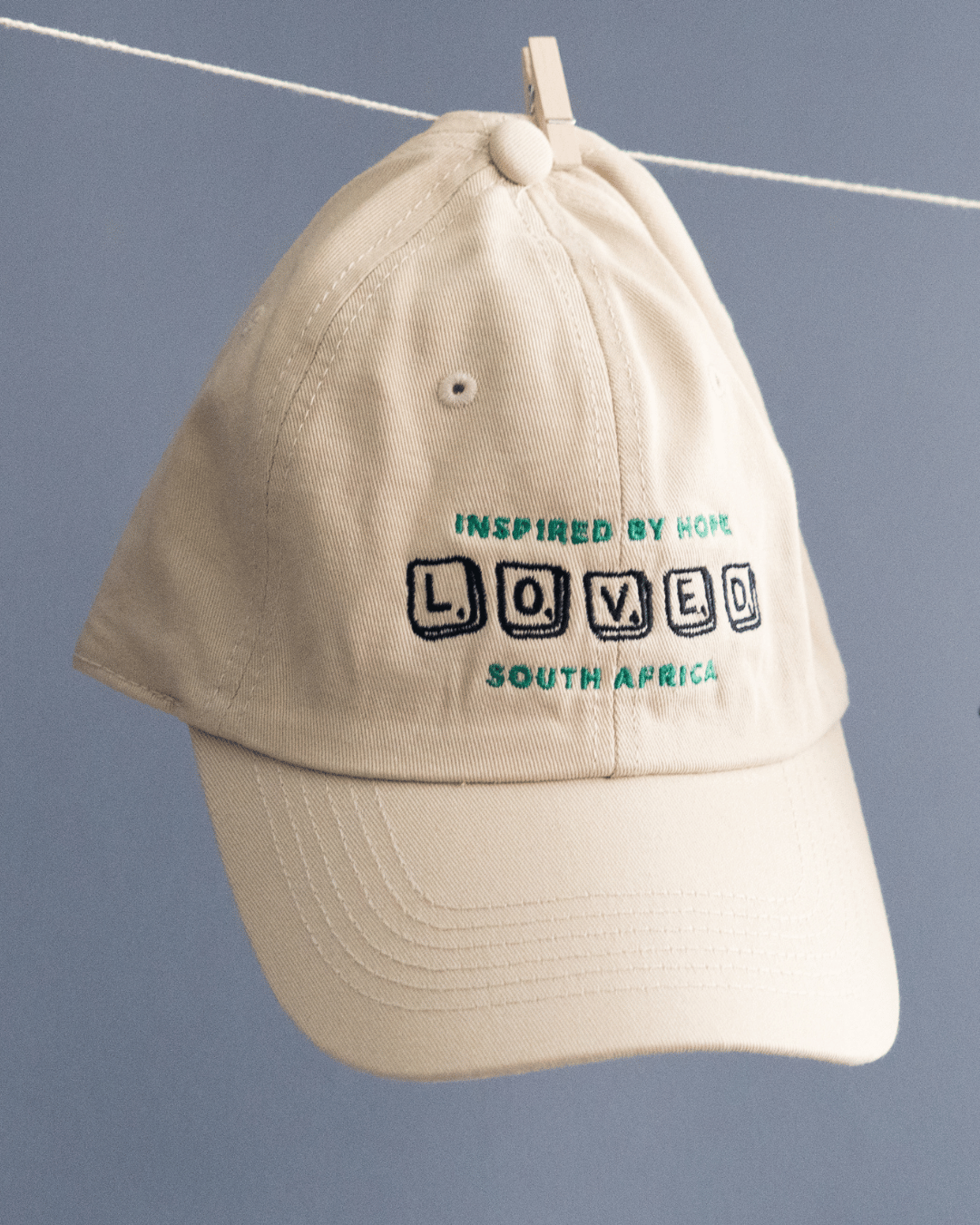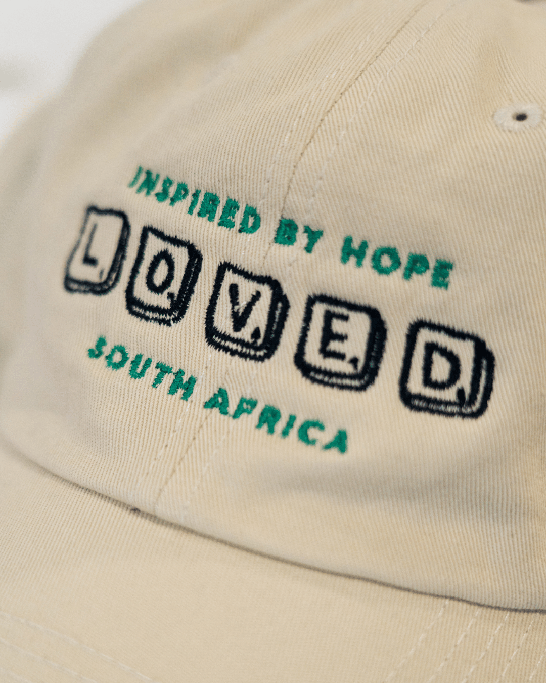 This cap is something we’ve always wanted to see. You can wear it locally to share some positivity or overseas as a homage to this beautiful country. We know South Africa isn’t perfect (where is), but there is something special here that deserves to be celebrated. The phrase “Inspired by Hope” is an overflow from our faith and a prayer for this nation. The Loved embroidery serves as a declaration and reminder to love and accept being loved. Inspired by growing up in the 90s, the Loved Scrabble illustration adds to the nostalgic vibe and also reflects on a time where hope and freedom became a reality for many. When wearing this cap may you feel loved and experience being a part of something greater than yourself, knowing that you are part of change and can be a catalyst of hope in someone else’s life.