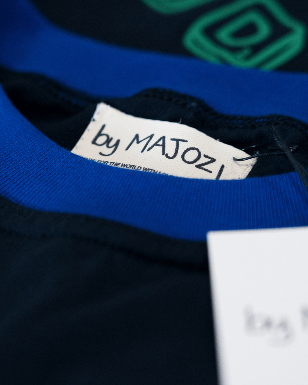 - Body detail: yellow Majozi Majerzey label bottom left, as an ode to past clothing creations